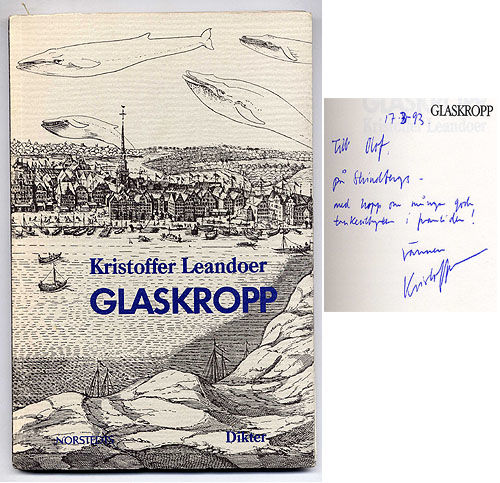 Stockholm, AB Grafisk press, 1990. 68,(1 blank,2) s. Häftad och oskuren. Lätt nött. Med dedikation till Olof Lagercrantz daterad den 17 mars 1993 och några anteckningar av Lagercrantz hand. Ur Olof Lagercrantz bibliotek och med inklistrad etikett på bakre omslags insida som anger detta.