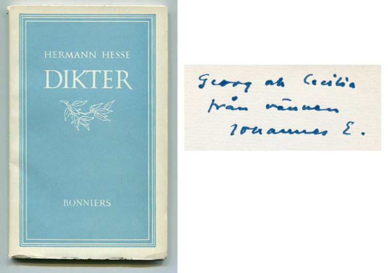 Stockholm, A. Bonniers boktryckeri, 1946. 83 s. Häftad och oskuren. Lätt stött överst på ryggen. Fint exemplar med dedikation från Johannes Edfelt till Georg och Cecilia Svensson.
