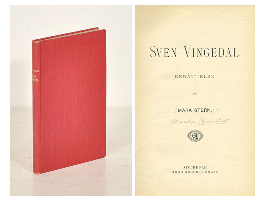 Utgiven av Hugo Gebers förlag. Marika Stiernstedt (1875-1954) debuterade 1894 som nittonåring med denna roman skriven under pseudonymen Mark Stern, innan dess hade hon endast låtit publicera novellen ”Stackars Josef” som trycktes i ”Stockholms dagblad” den 20 november 1892. Hon kom att bli en mycket läst och framstående författare under första delen av 1900-talet. Utöver den imponerande romanproduktionen, 21 stycken, skrev hon även dramer, noveller och reportageböcker.