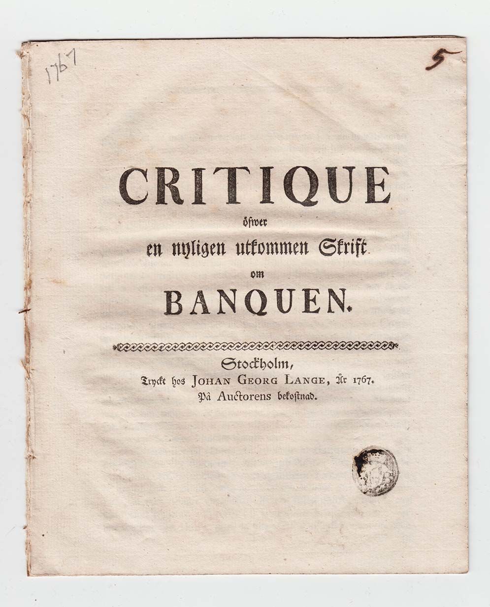 Critique öfwer en nyligen utkommen skrift Om banquen.