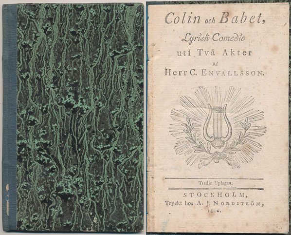 Sthlm, A. J. Nordström, 1800. 8:o. 30 s. Blått hklbd från 1800-talets andra hälft med grönmarmorerat pärmpapper och handskriven titeletikett. Lagerfläckig och småsolkig. Det sista bladet saknas.