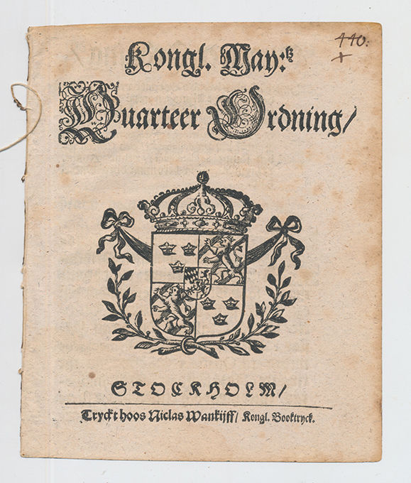 Kongl. may:tz quarteer ordning.