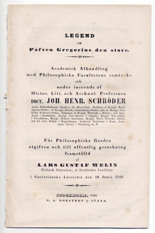 Sthlm, P. A. Norstedt & söner, 1848. 8:o. 16 s. Tagen ur band. Lagerfläckigt titelblad.