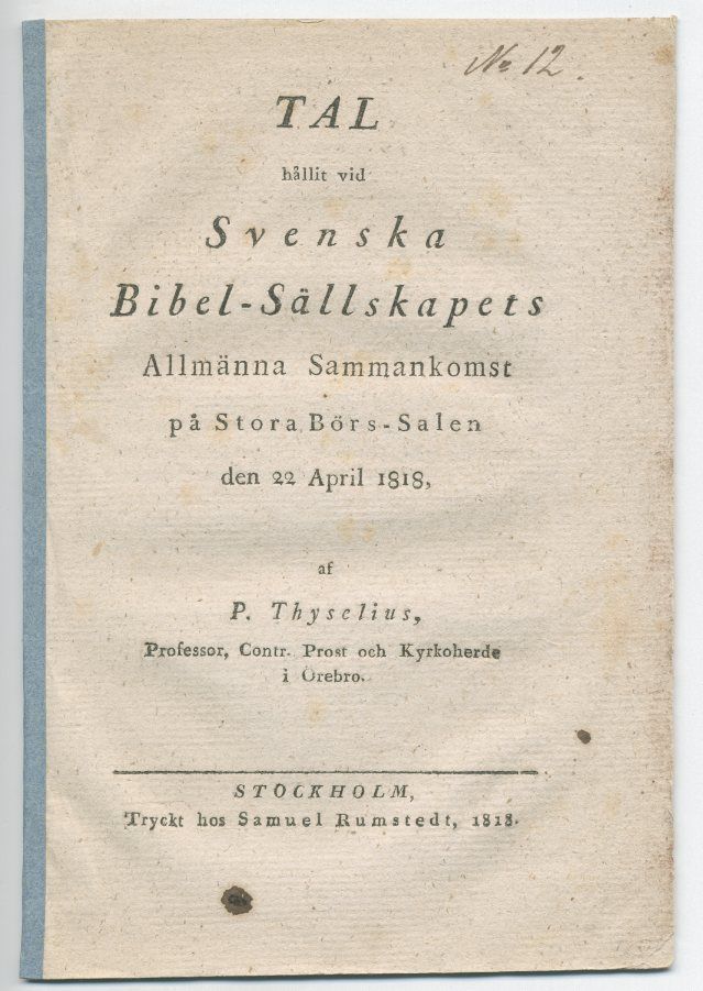 Tal hållit vid Svenska bibel-sällskapets allmänna sammankomst på Stora börs-salen den 22 april 1818.