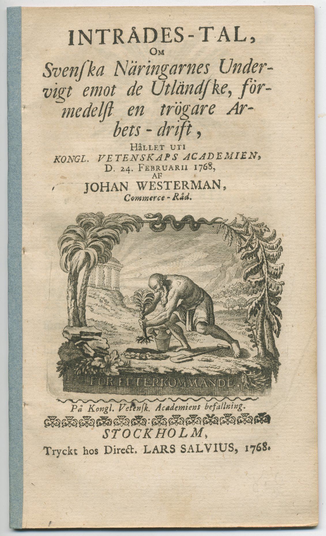 Inträdes-tal, om svenska näringarnes undervigt emot de utländske, förmedelst en trögare arbets-drift, hållet uti kongl. Vetenskaps academien, d. 24 februarii 1768.