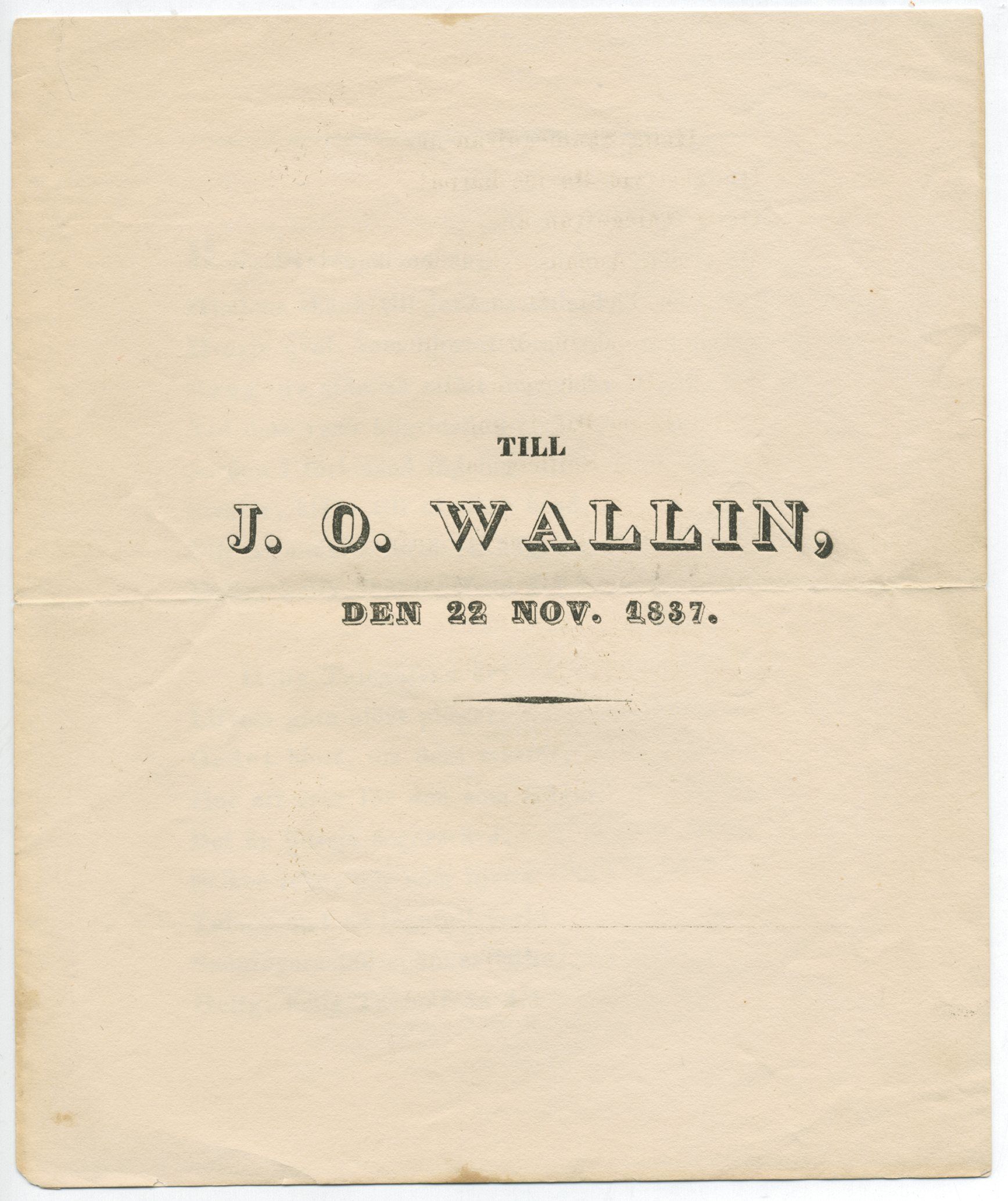 Sthlm, P. A. Norstedt & söner, 1837. 4:o. (4) s. Har varit vikt. Småfläckig och med en liten reva i vecket.
