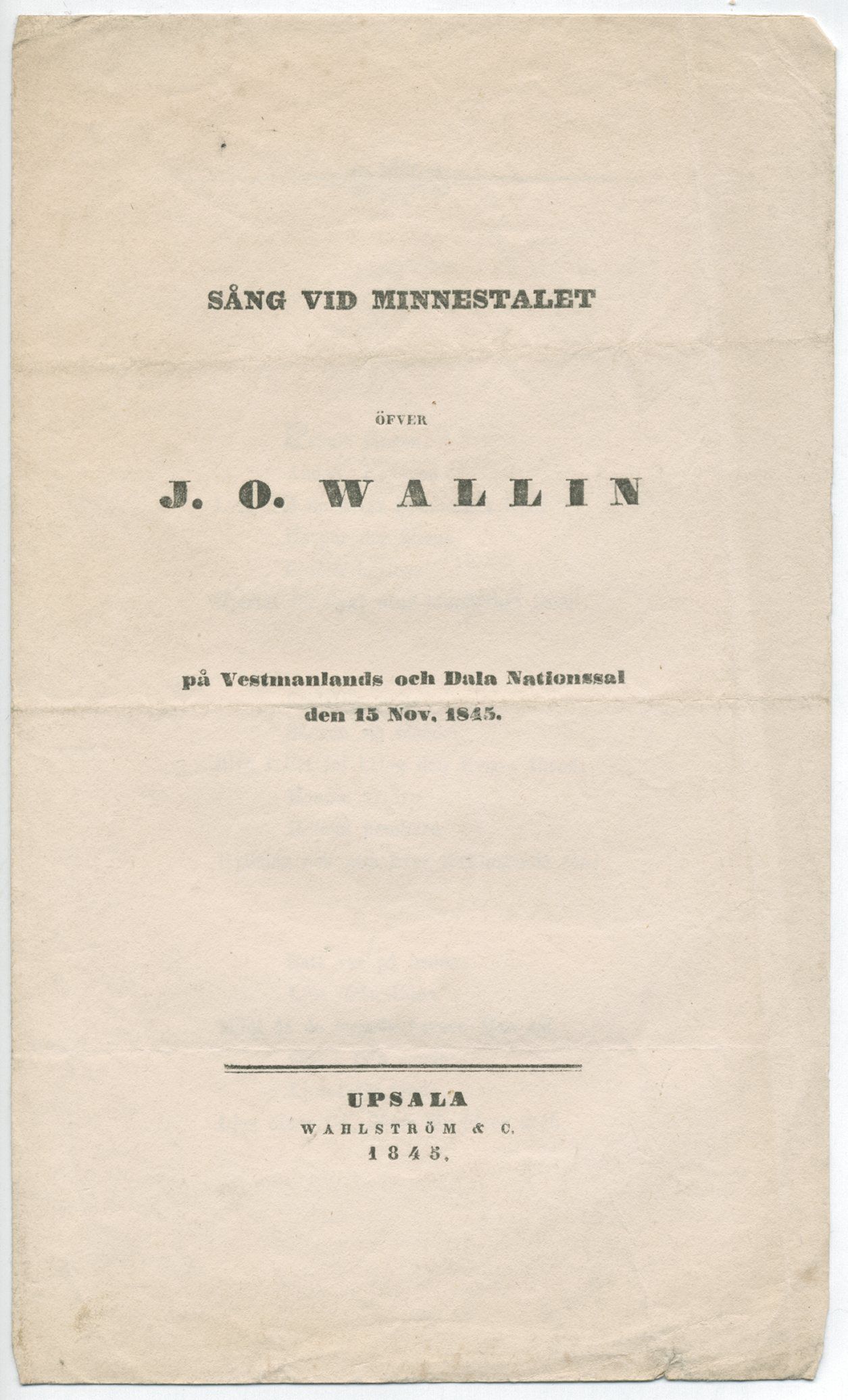 Sång vid minnestalet öfver J. O. Wallin på Vestmanlands och Dala nationssal den 15 nov. 1845.