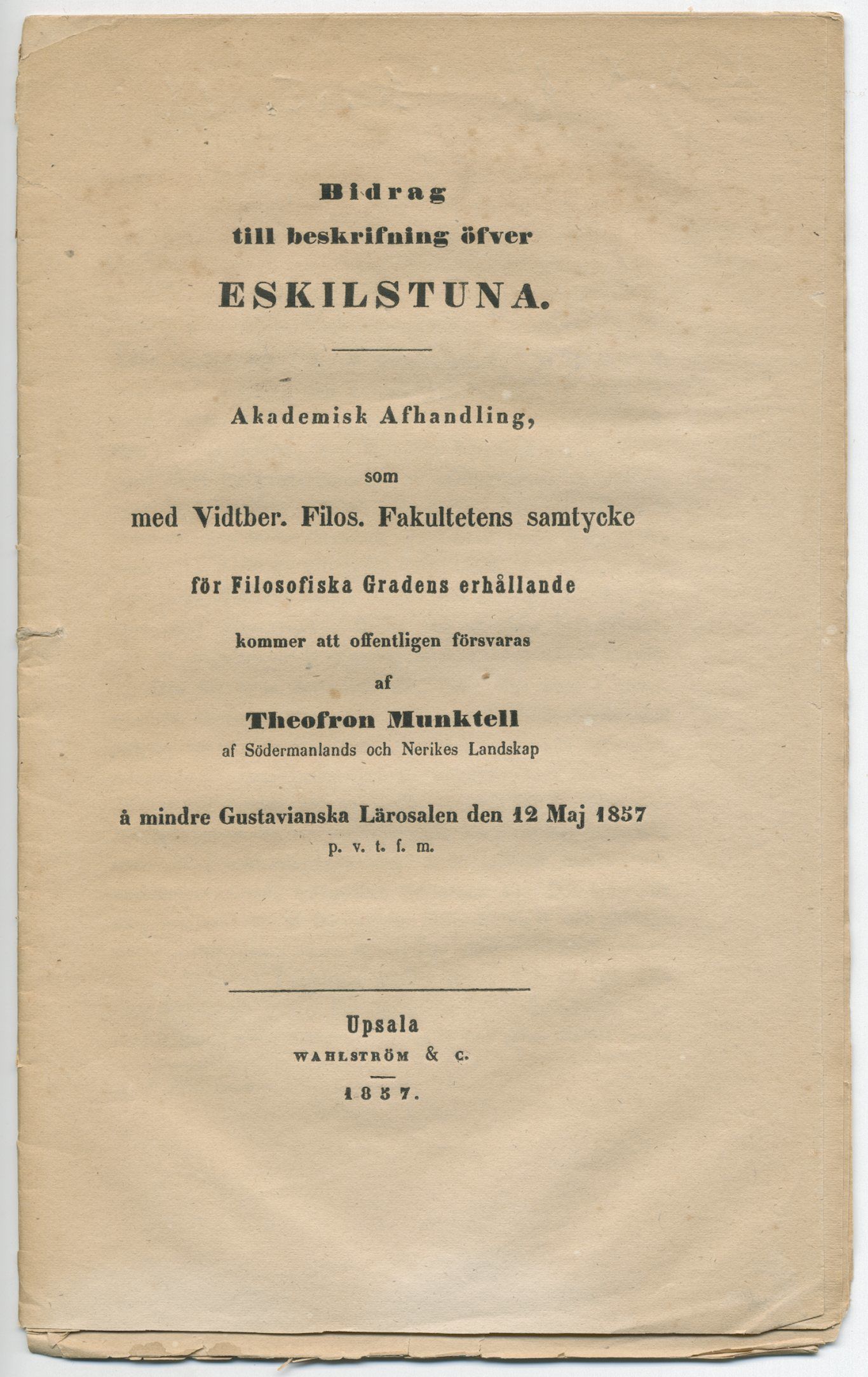 Bidrag till beskrifning öfver Eskilstuna. A.a.