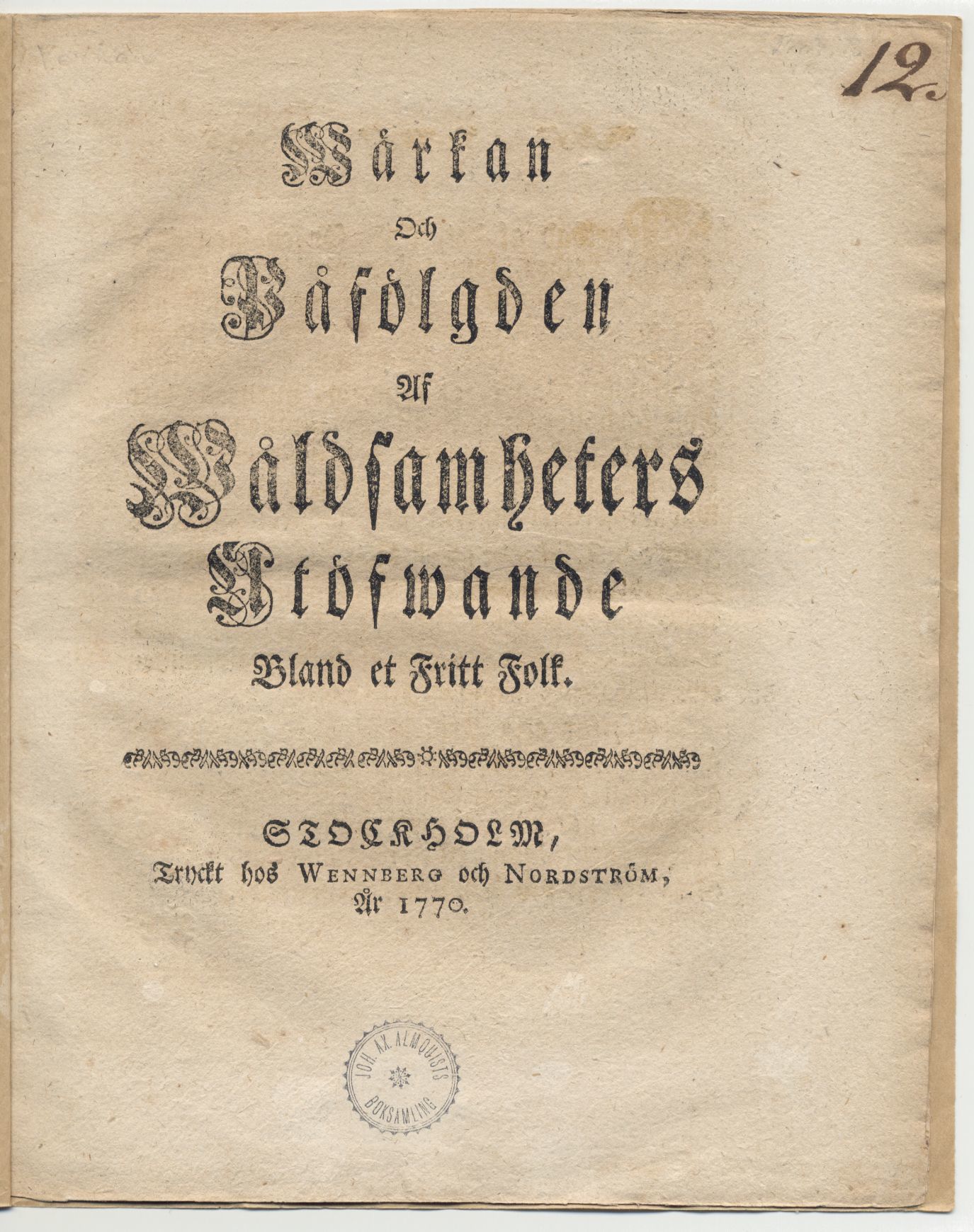 Wärkan och påfölgden af wåldsamheters utöfwande bland et fritt folk.