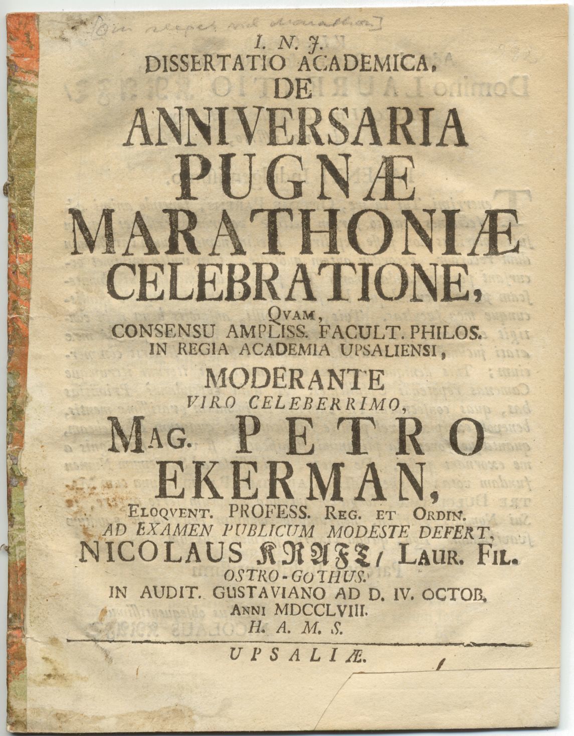 Dissertatio academica, de anniversaria pugnæ Marathoniæ celebratione. A.a.