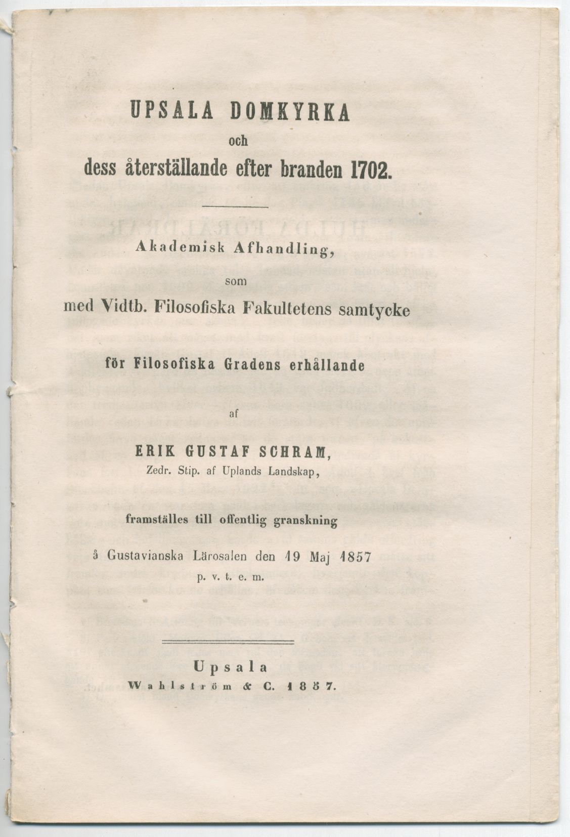 Uppsala, Wahlström & c., 1857. 8:o. (2),19 s. Tagen ur band.