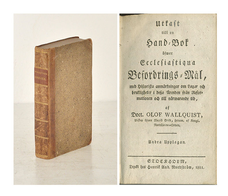 Sthlm, H. A. Nordström, 1811. 8:o. (6,2 blanka),VI,538 s. Samtida hfrbd med guldlinjerad rygg och tegelbrun titeletikett. Rödstänkta snitt. Något nött och fläckig rygg samt lite nötta pärmkanter. Försättsbladet och frampärmens insida med små grå fläckar, rest av gammal auktionsremsa och överstruken samtida namnteckning. Någon enstaka understrykning och småfläck. Pertti Uljanens namnteckning från 1961 på bakpärmens insida.