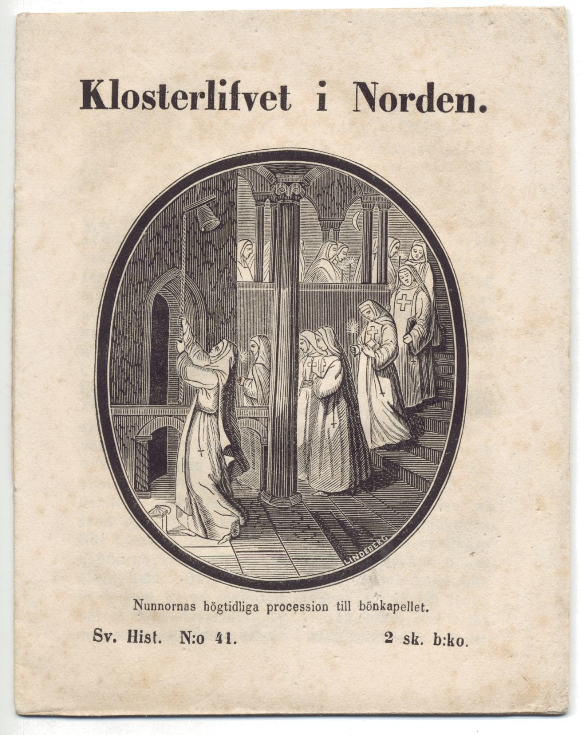 Ingår bland P. G. Bergs folkskrifter i serien ”Sv. hist.” som nr 41. En senare upplaga utkom 1861. Vinjetten visar ”Nunnornas högtidliga procession till bönkapellet”.