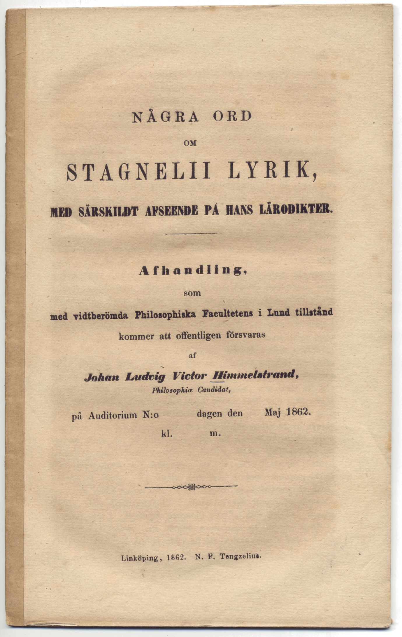 [Stagnelius] HIMMELSTRAND, JOHAN LUDVIG VICTOR.
