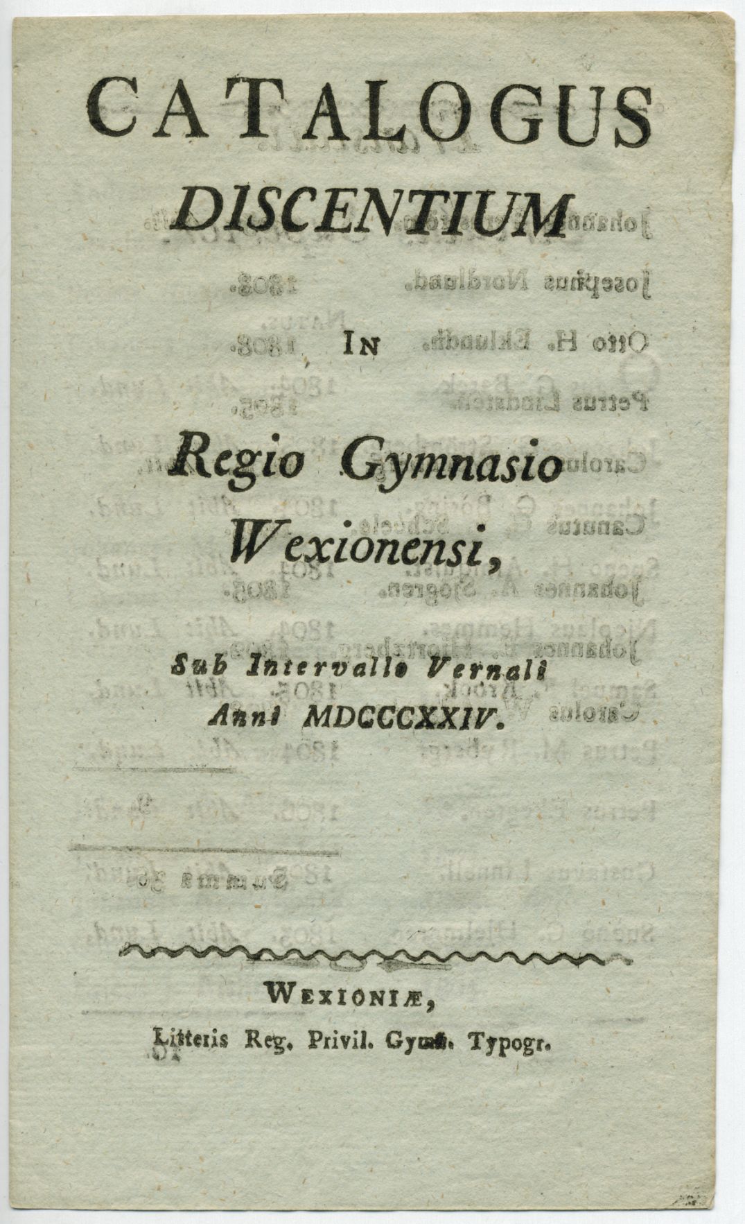 Catalogus discentium in regio gymnasio Wexionensi, sub intervallo vernali anni MDCCCXXIV.