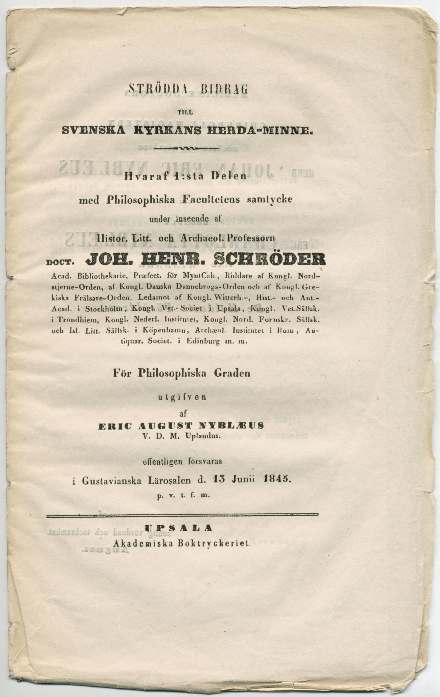 SCHRÖDER, JOH. HENR. [preses] & NYBLÆUS, ERIC AUGUST [respondent].