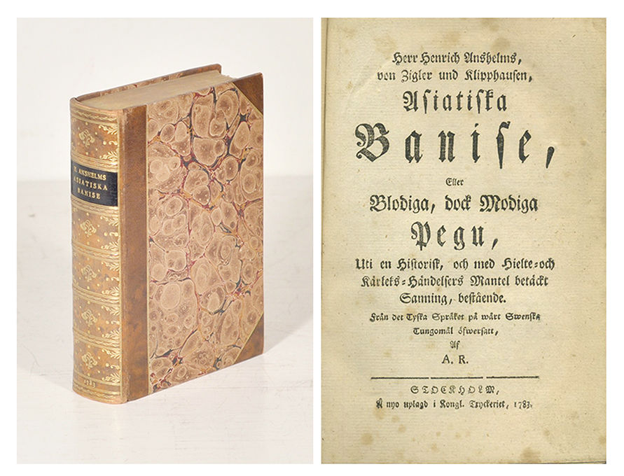 Asiatiska Banise, eller blodiga, doch modiga Pegu, uti en historisk, och med hielte- och kärleks-händelsers mantel betäckt sanning, bestående. Från det tyska språket på wårt swenska tungomål öfwersatt af A. R.