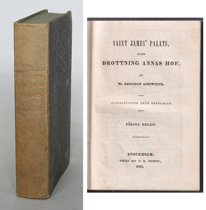 Furuland Bibliografi över svenska skönlitterära häftesserier K:108. Utgiven i Thomsons ”Nytt kabinetsbibliothek af in- och utländsk romanlitteratur”. William Harrison Ainsworth (1805-82) var engelsk romanförfattare. Föreliggande roman ”St. James’s” publicerades som följetong i hans tidskrift ”Ainsworth’s Magazine” under 1844. Johan Sederholm (1813-83) övertog efter studier i Uppsala skötseln av Näfveqvarns bruk där han var brukspatron till sin död.