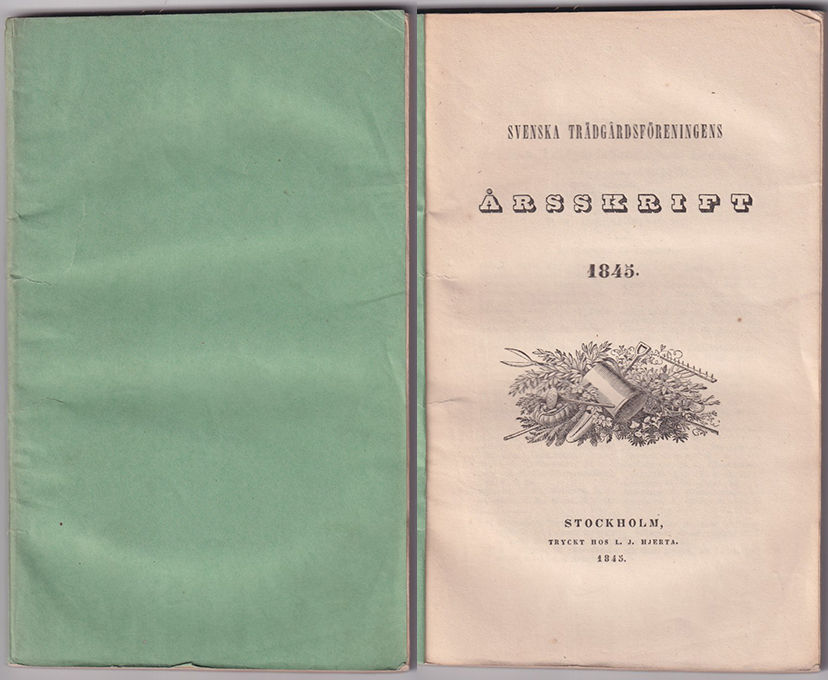 Hebbe Den svenska lantbrukslitteraturen 1573. Lundstedt Sveriges periodiska litteratur 145. Trädgårdsföreningens årsskrift utkom 1834-63. Häftet innehåller till största delen ledamotsförteckningar och diverse årsberättelser, samt artiklar om växthuset i föreningens trädgård. I slutet återfinns ett föredrag av professor Elias Fries om väderlekens inflytande på växtkulturen och ”Anteckningar under en resa i norra Tyskland sommaren 1844, till inhämtande af trädgårds-odlingens framsteg” av Daniel Müller.
