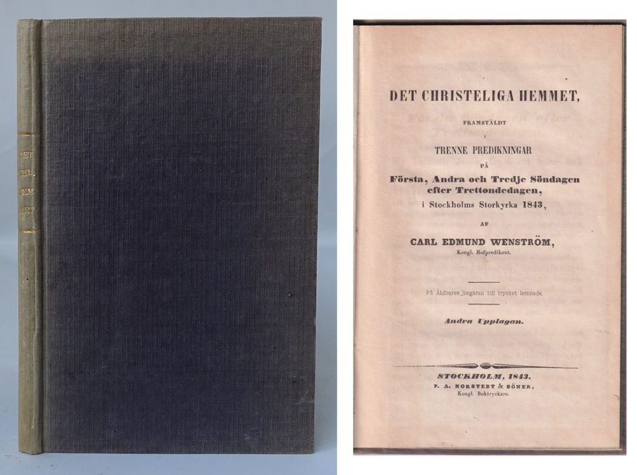 Det christeliga hemmet, framstäldt i trenne predikningar på första, andra och tredje söndagen efter trettondedagen, i Stockholms storkyrka 1843. På åhörares begäran till trycket lemnade. Andra upplagan.