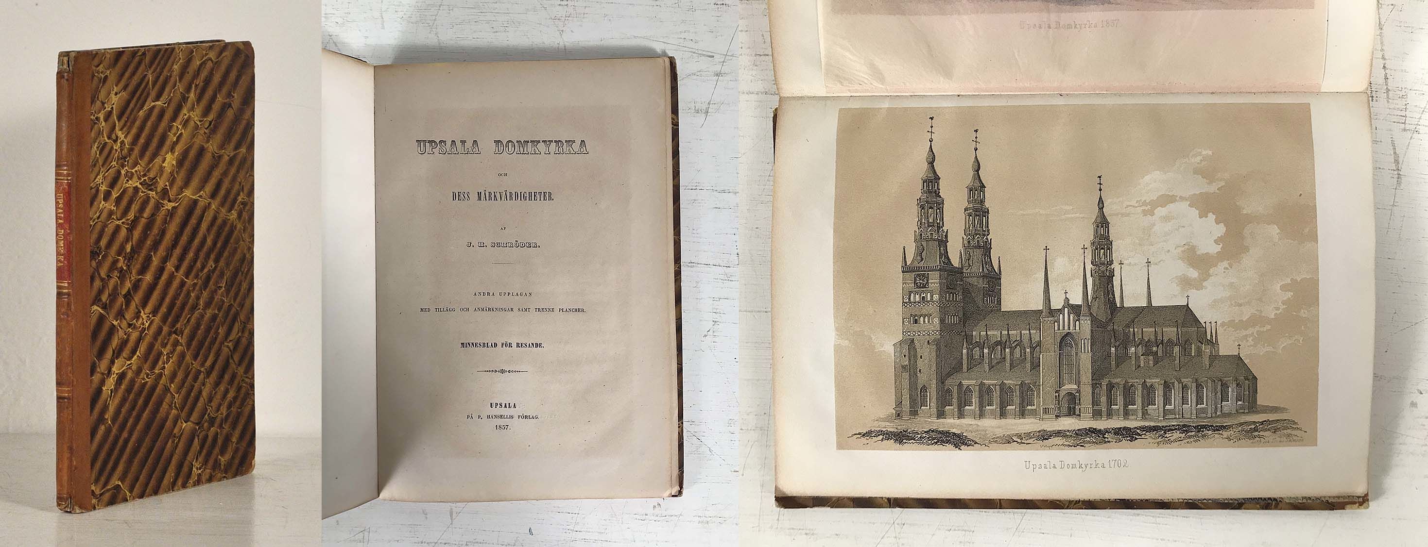 Upsala domkyrka och dess märkvärdigheter. Andra upplagan med tillägg och anmärkningar samt trenne plancher. Minnesblad för resande.