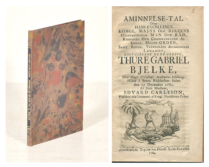 Åminnelse-tal öfver hans excellence, kongl. maj:ts och riksens högstbetrodde man och råd, riddaren och commendeuren af kongl. maj:ts orden, samt kongl. Vetenskaps academiens ledamot, högvälborne herr grefve, Thure Gabriel Bjelke, efter kongl. Vetenskaps academiens befallning, hållit i stora riddarhus-salen den 15 december 1763.