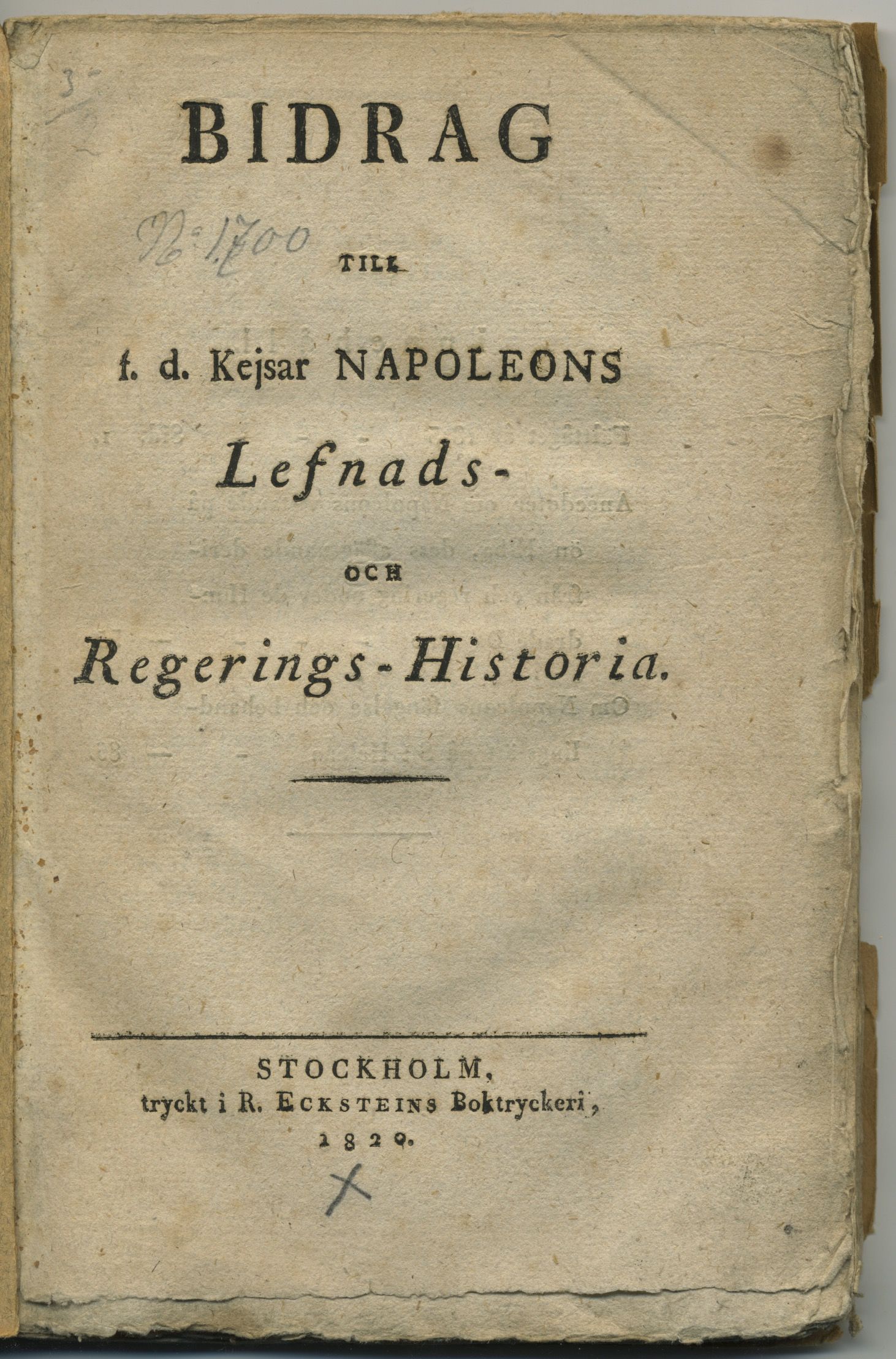 Bidrag till f.d. kejsar Napoleons lefnads- och regerings-historia.