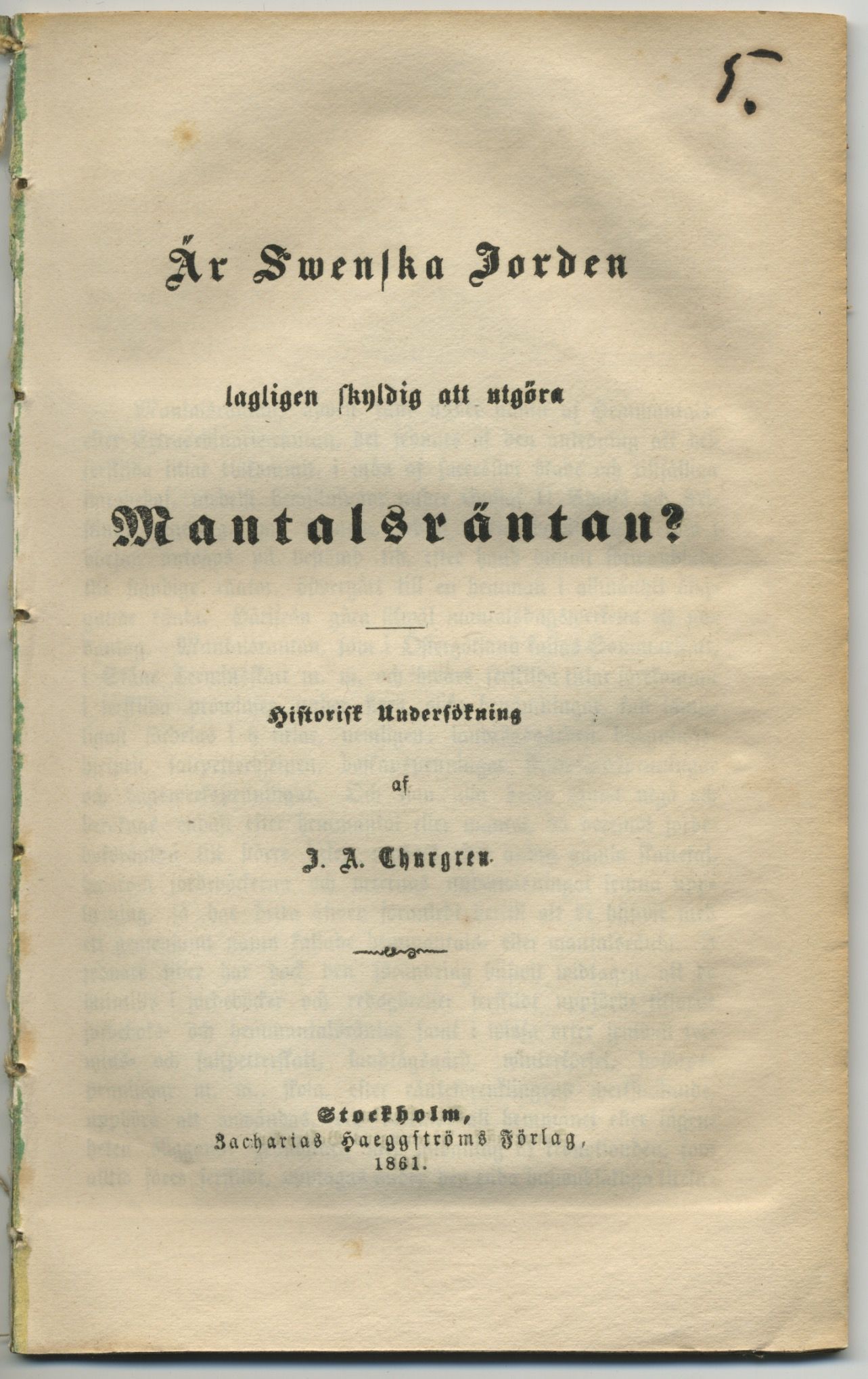 Är swenska jorden lagligen skyldig att utgöra mantalsräntan? Historisk undersökning.