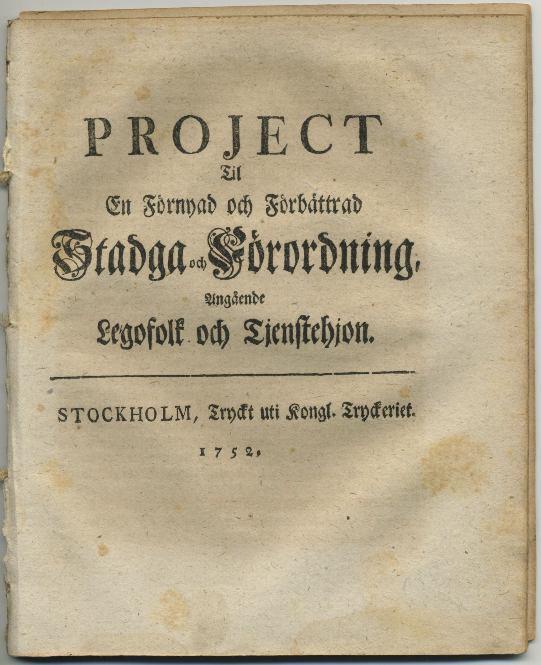 Project til en förnyad och förbättrad stadga och förordning, angående legofolk och tjenstehjon.