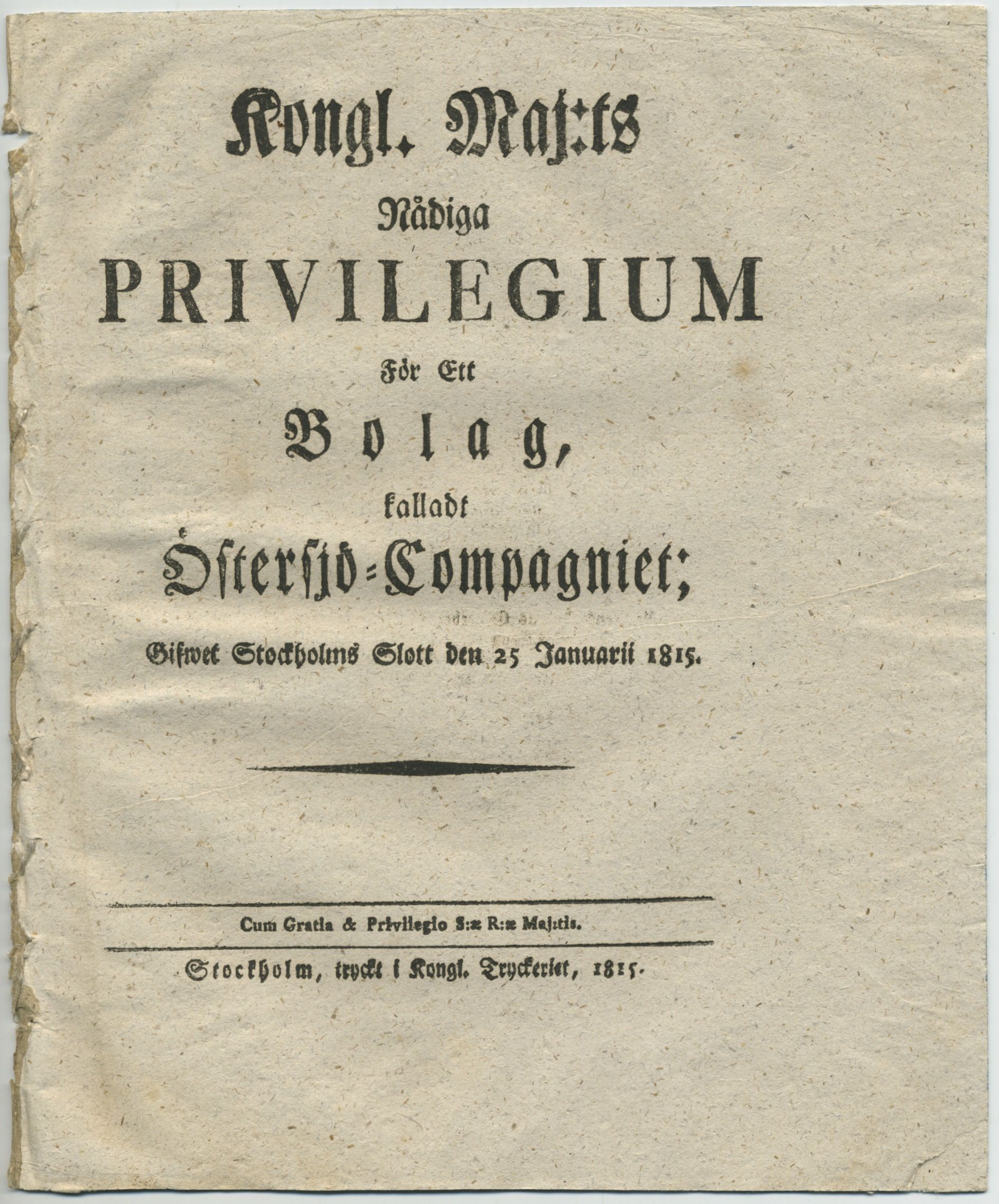 Kongl. maj:ts nådiga privilegium för ett bolag, kalladt Östersjö-compagniet; gifwet Stockholms slott den 25 januarii 1815.