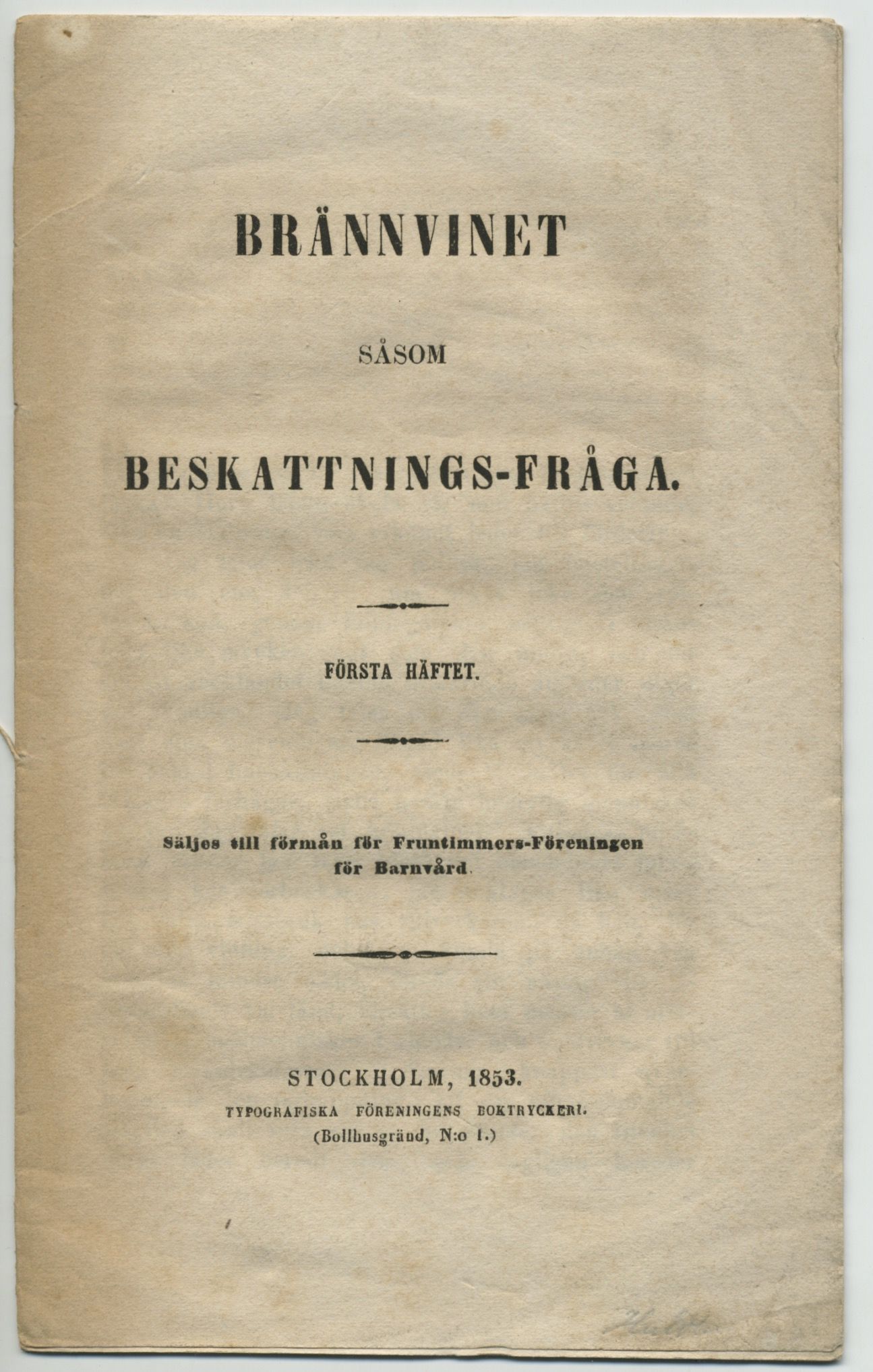 Brännvinet såsom beskattnings-fråga. Första häftet. Säljes till förmån för Fruntimmers-föreningen för barnvård.