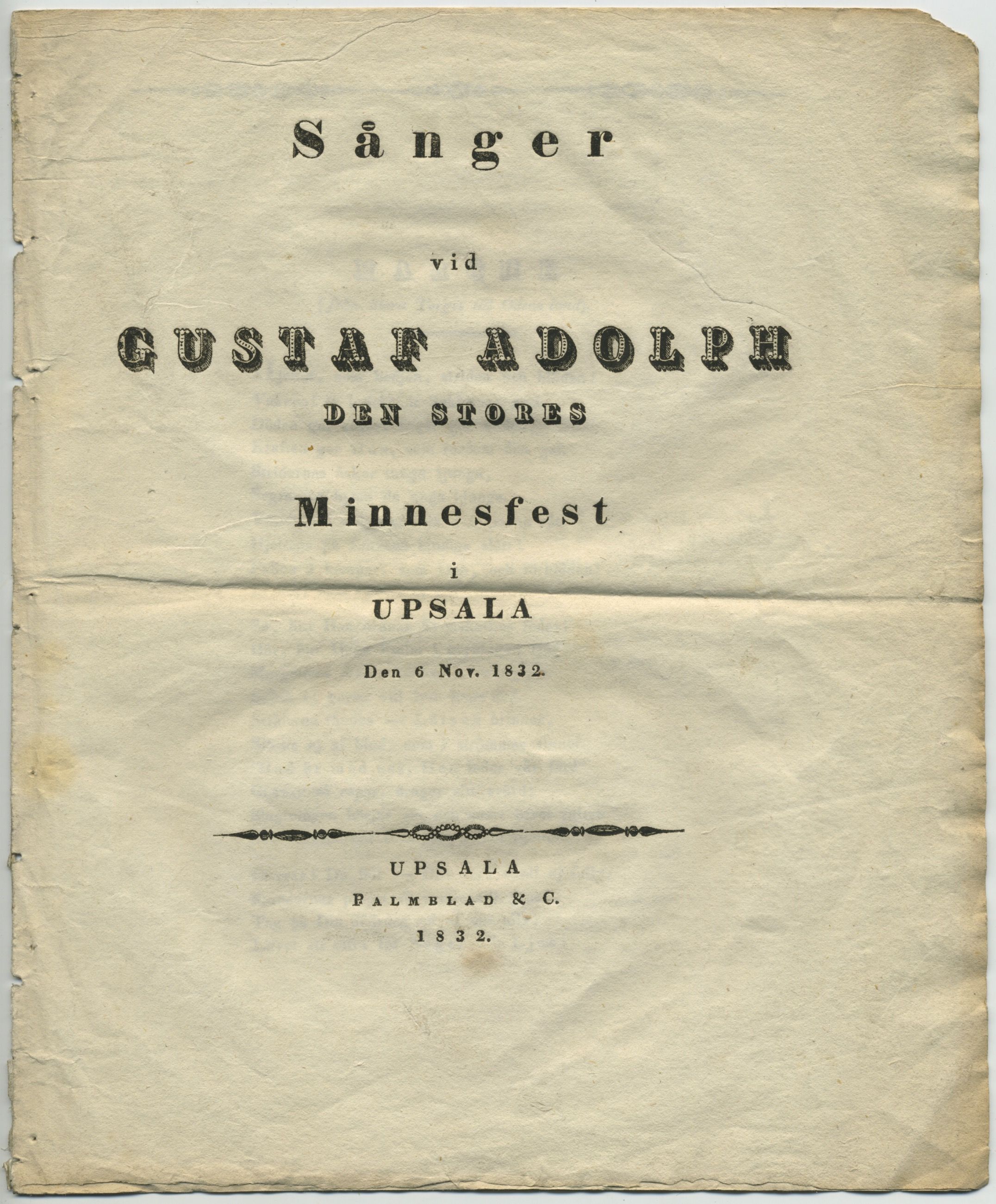 Sånger vid Gustaf Adolph den stores minnesfest i Upsala den 6 nov. 1832.