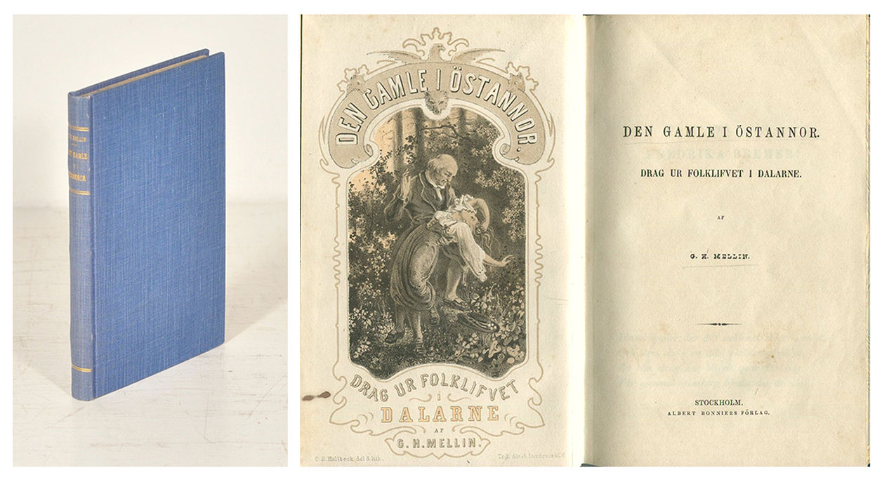 Detta är tredje delen av ”Skildringar af den skandinaviska nordens folklif och natur.” Serietitelbladet som anger detta saknas. Med en kort dedikationsdikt till Fredrika Bremer. Totalt fyra fristående delar utkom av serien 1855-76, utgivna av Albert Bonniers förlag. Den tonlitografiska frontespisen är utförd av C. S. Hallbeck och visar den gamle i skogen hållande en avsvimmad flicka i armarna. De övriga tre delarna i serien har motiv från Lappmarken, Jämtland respektive Västergötland.