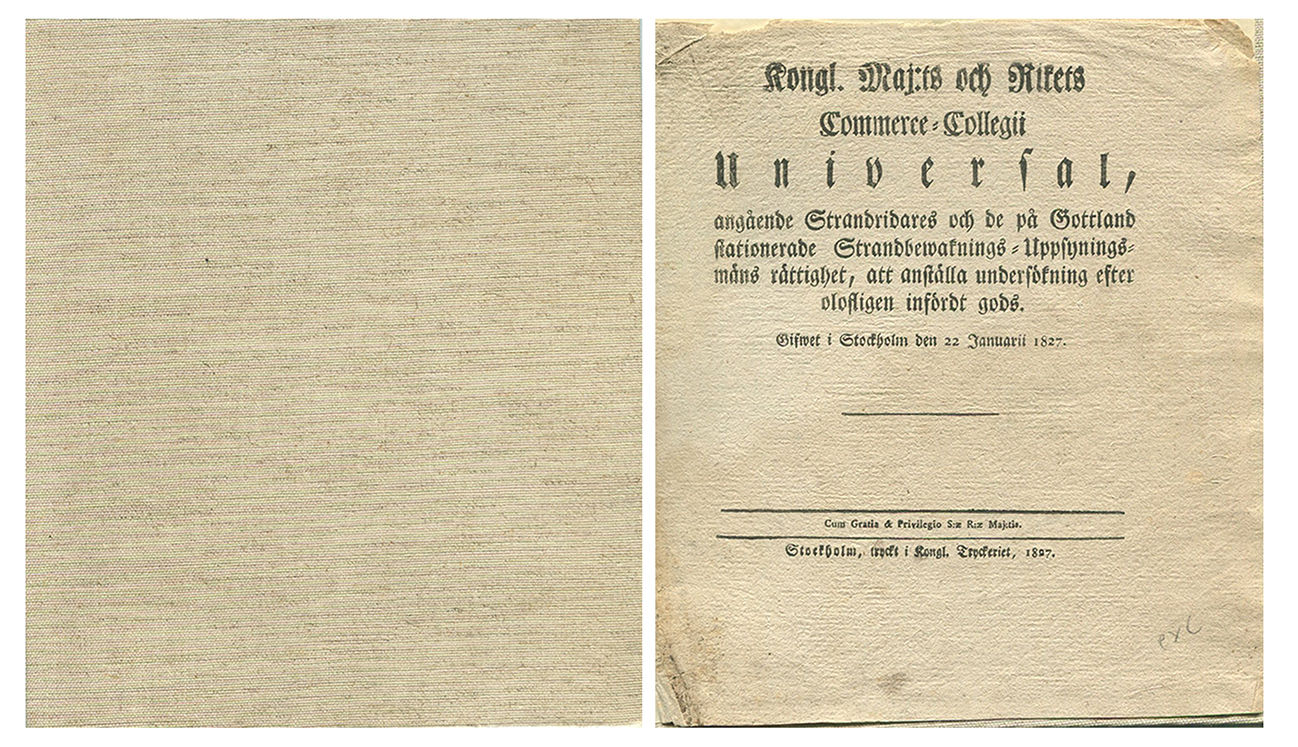 Kongl. maj:ts och rikets Commerce-collegii universal, angående strandridares och de på Gottland stationerade strandbewaknings-uppsyningsmäns rättighet, att anställa undersökning efter olofligen infördt gods. Gifwet i Stockholm den 22 januarii 1827.