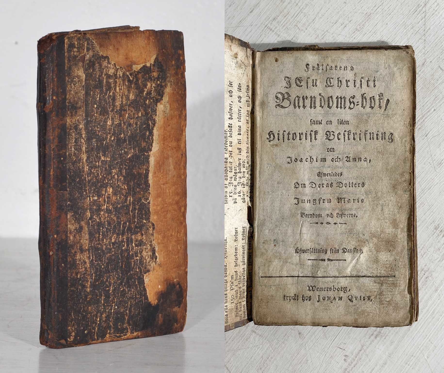 Frälsarens Jesu Christi barndoms-bok, samt en liten historisk beskrifning om Joachim och Anna, äfwenledes om deras dotters jungfru Maria barndom och lefwerne. Öfversättning från danskan.