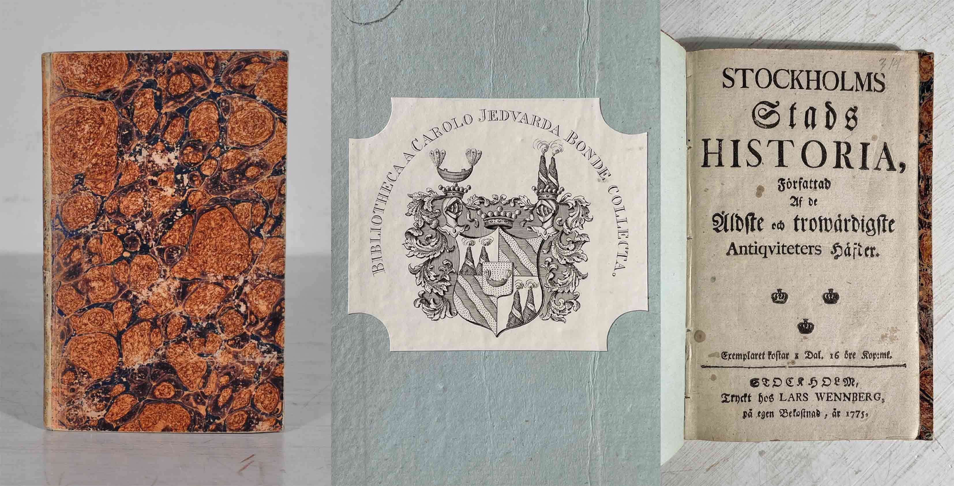 Sthlm, L. Wennberg, 1775. 8:o. 59,(5) s. Lätt nött marmorerat pappbd från 1800-talets första tredjedel utan titel. Ryggen blekt och lite mer nött. Titelbladet med ett par småfläckar. En liten fuktfläck i övre marginalen på s. 53-59. Med Carl Jedvard Bondes formklippta exlibris. Från Ericsberg.