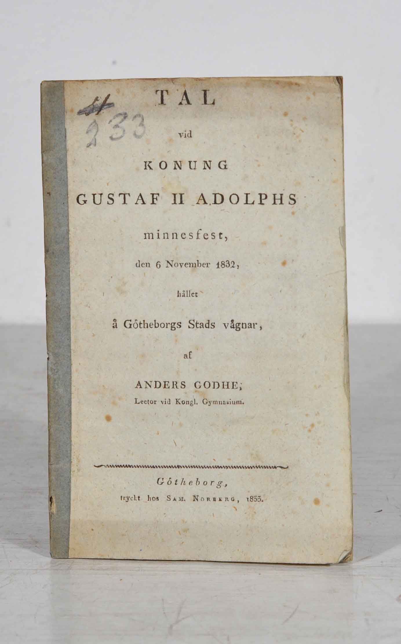 Tal vid konung Gustaf II Adolfs minnesfest, den 6 november 1832, hållet å Götheborgs stads vägnar.