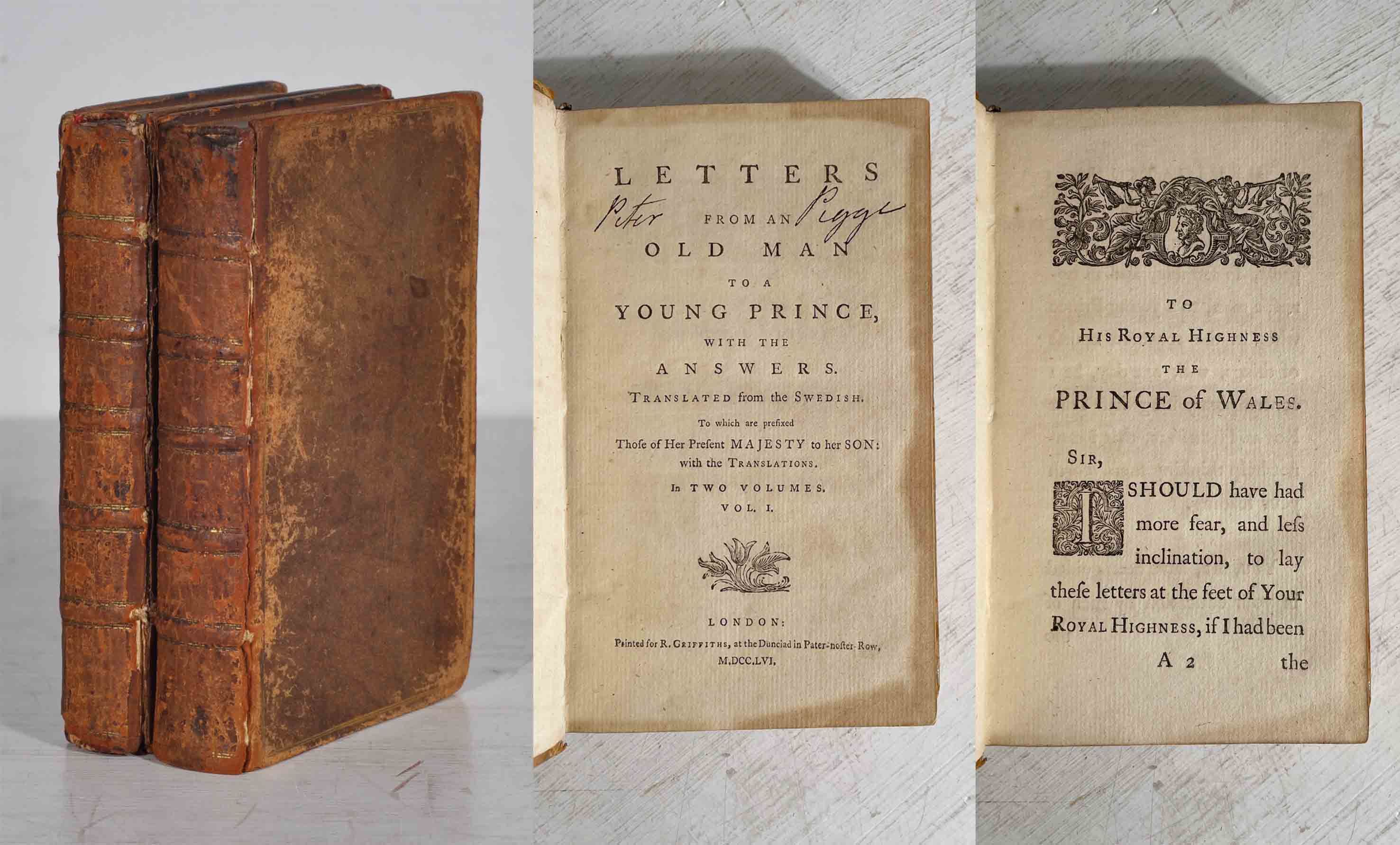 London, printed for R. Griffiths, 1756. 12:o. LII,200 + (2 blanka,2),272 s. Två hårt nötta samtida skinnbd med upphöjda bind och guldlinjerade ryggar utan ryggtitlar. Rödstänkta snitt. Falsarna lagade men ändå spruckna och den andra volymens bakre pärm loss. Ryggarna något naggade upp- och nedtill. Stötta pärmhörn samt avskavningar på både pärmar och hörn. För- och eftersättsbladen samt de första respekive sista bladen i bägge volymerna med mörknade marginaler. En reva i försättsbladet i andra volymen. Enstaka småfläckar i marginalerna, den andra volymen ställvis med en liten ljus fuktfläck i övre marginalen. Första volymen med Peter Pigges ägarnotering på titelbladet.