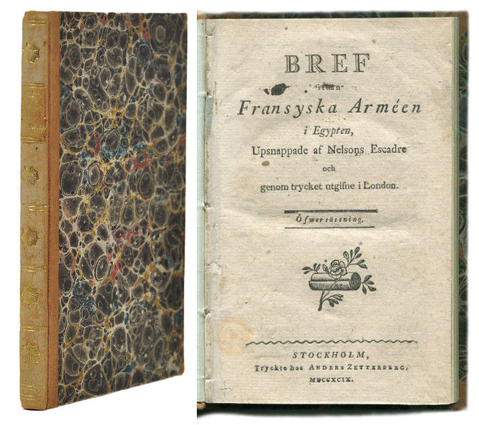 Originalet, ”Copies of original letters from the army of general Bonaparte in Egypt”, utkom 1799. Rör händelser under 1798.