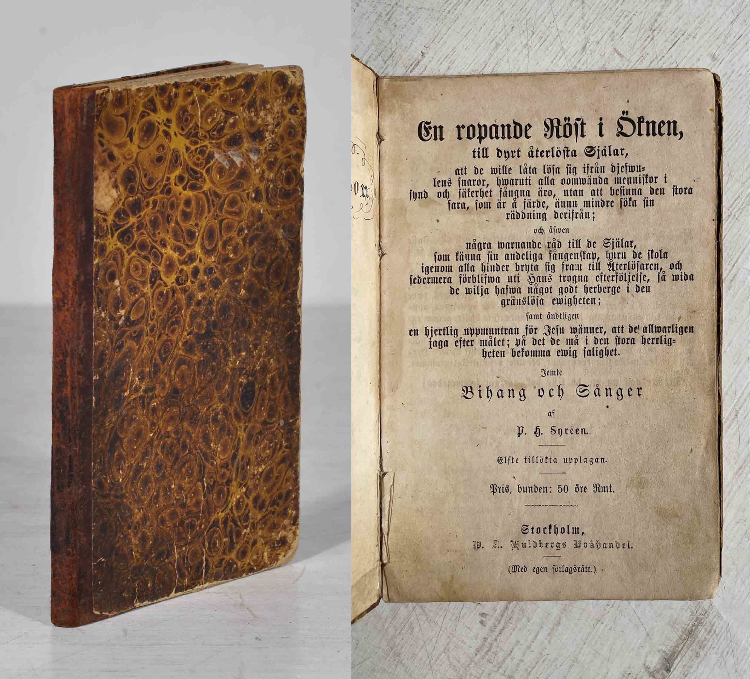 En ropande röst i öknen, till dyrt återlösta själar, att de wille låta lösa sig ifrån alla djefwulens snaror, hwaruti alla oomwända menniskor i synd och säkerhet fångna äro, utan att besinna den stora fara, som är å färde, ännu mindre söka sin räddning derifrån; och äfwen några warnande råd till de själar, som känna sin andeliga fångenskap, huru de skola igenom alla hinder bryta sig fram till återlösaren, och sedermera förblifwa uti hans trogna efterföljelse, så wida de wilja hafwa något godt herberge i den gränslösa ewigheten; samt ändtligen en hjertelig uppmuntran för Jesu wänner, att de allwarligen jaga efter målet; på det de må i den stora herrligheten bekomma ewig salighet. Jemte bihang och sånger af P. H. Syréen. Elfte tillökta upplagan.