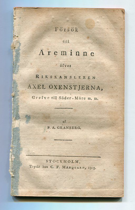 Försök till äreminne öfver rikskanslerna Axel Oxenstjerna, grefve till Söder-Möre m.m.