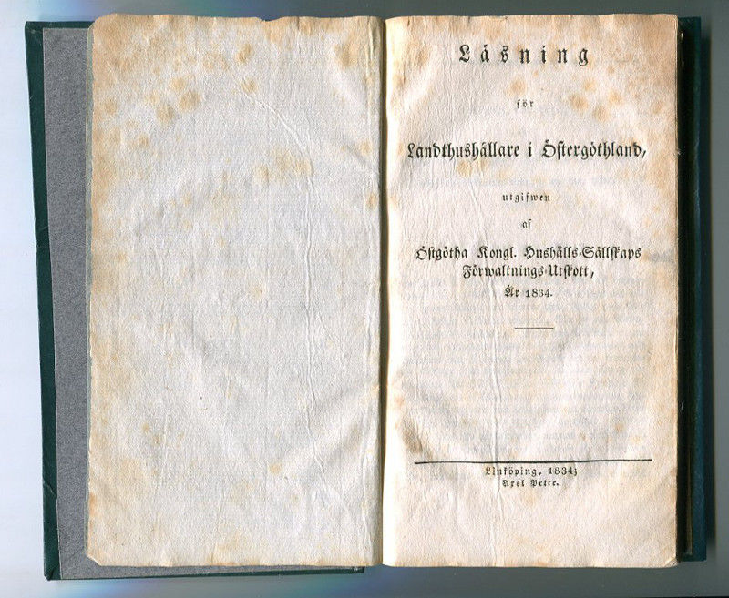 Läsning för landthushållare i Östergöthland, utgifwen af Östgötha kongl. hushålls-sällskaps förwaltnings-utskott, år 1834.