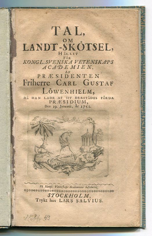 Tal om landt-skötsel, hållit för kongl. svenska Vetenskaps academien [...] då han lade af sit derstädes förda præsidium, den 19 januarii, år 1751.