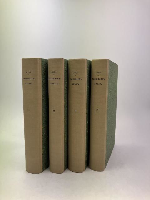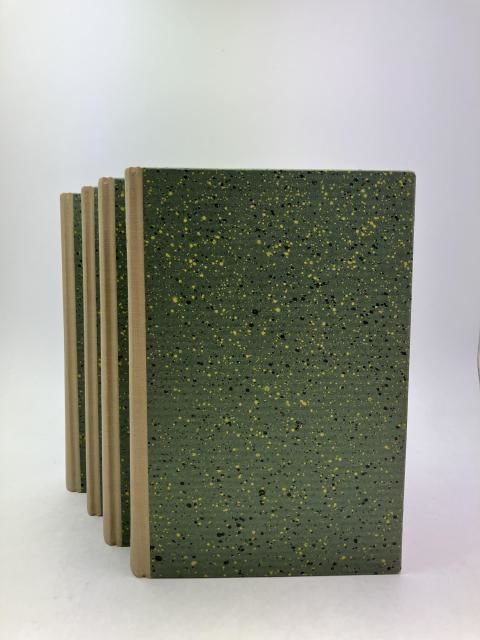 Stockholm & Lund 1931-1943. 451, (1); 360, (1); 400, (2) s., 1 plansch; 414, (1) s., 1 plansch. Eleganta, senare halvklotband (Lars Eriksson) med gröna stänkdekorerade pärmpapper, samtliga häftesomslag medbundna. Ett par av de medbundna omslagen delvis något blekta, i övrigt en mycket fin uppsättning. Del 1 och 2 tryckta i 1000 exemplar, del 3 och 4 i 300 exemplar.