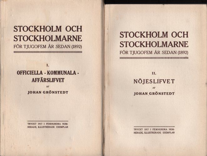 STOCKHOLM OCH STOCKHOLMARNE FÖR TJUGOFEM ÅR SEDAN (1892) I-II. Officiella-Kommunala affärslifvet. - Nöjeslifvet.