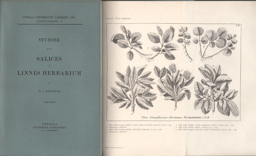 Uppsala universitets årsskrift 1907. Linnéfest-skrifter 2. Tryckt i Uppsala: Almqvist & Wiksell, 1907. (4), 138 s + planscher. 25x16 cm. Häftad och ouppskuren. Illustrerad med 2 utvikbara svartvita planscher.