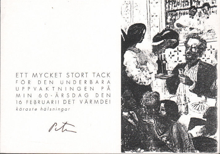 TACKKORT FRÅN KONSTNÄRENS 60-ÅRSDAG 1994.