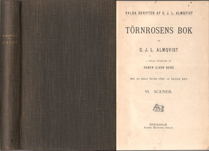Stockholm: Bonniers, 1903. Ur valda skrifter Törnrosens bok VI. 294 s. Privatbundet klotband.