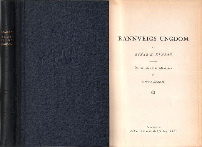 Översättning från isländskan av Nanna Nordal. Stockholm: Oskar Eklund, 1925. Första och enda svenska upplagan. 164 s. Inbunden i ett dekorerat skinnryggsband.