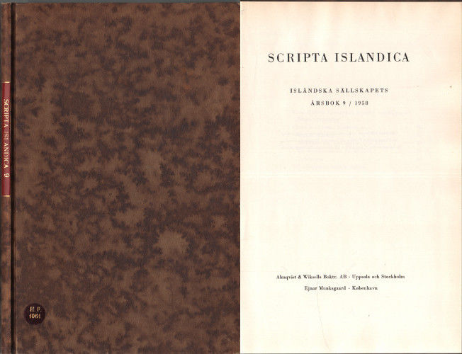 SCRIPTA ISLANDICA. Isländska sällskapets årsbok 9 / 1958.